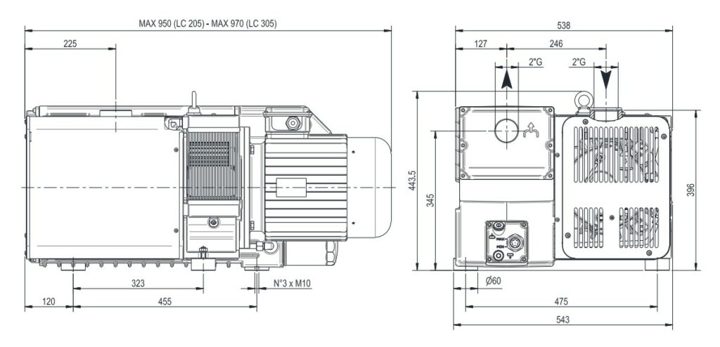 Вакуумный насос DVP LC.305 имеет производительность 305 м3/ч и достигает предельного уровня вакуума до 0,1 мбар абс. Насос комплектуется электродвигателем мощностью 7,5 кВт производства Lafert (Италия).